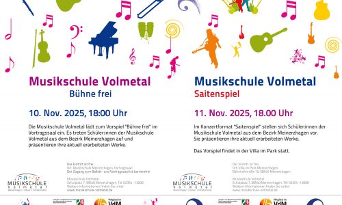 Musikschule Volmetal lädt ein: Vorspiele „Bühne frei“ am 10. November und „Saitenspiel“ am 11. November 2025