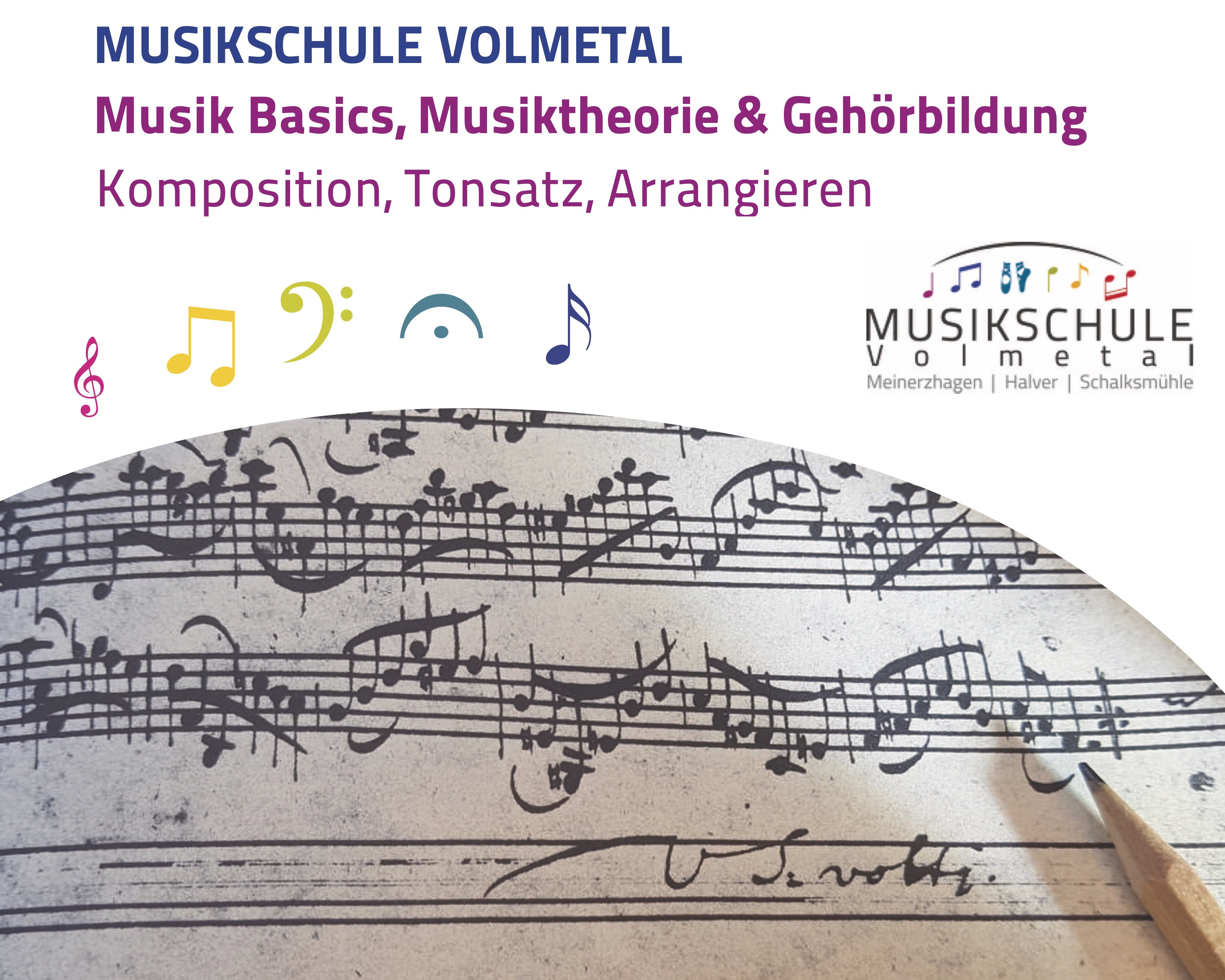 Music Basics, Gehörbildung und Komposition: Auch die Musiktheorie ist ein wesentlicher Themenbereich, den das Musikschul-Team kontinuierlich ausbaut. Nun gibt es neben den bisherigen Kursen der Musiktheorie mit „Musiktheorie für erwachsene Anfänger“ ein weiteres Angebot, in dem Grundkenntnisse der Musiktheorie neu vermittelt oder aufgefrischt werden.