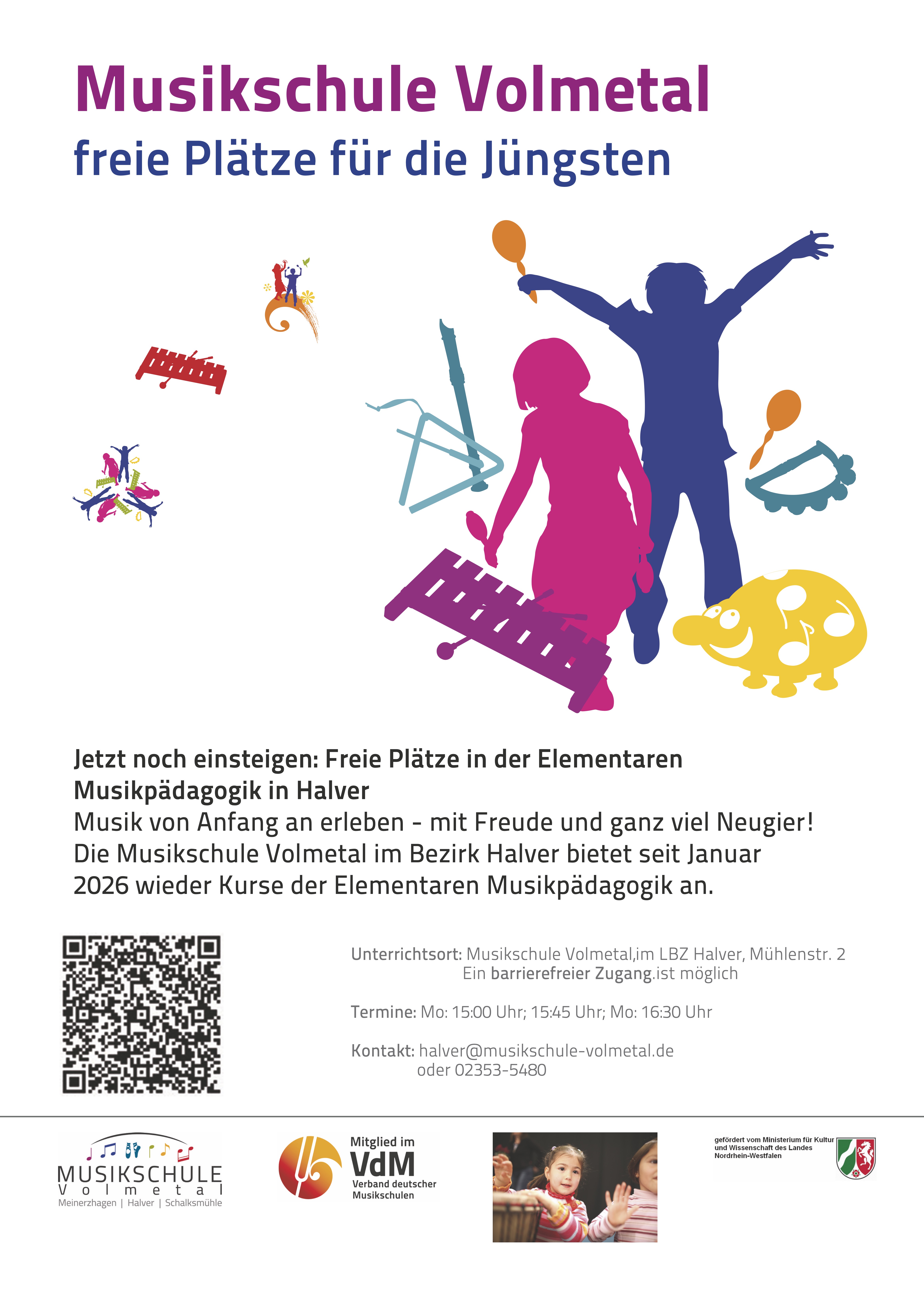 Die Musikschule Volmetal im Bezirk Halver bietet seit Januar 2026 wieder Kurse der