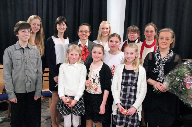 Zwischen den Wortbeiträgen machten Klavierschüler und das Blockflötenensemble die Musikliebhaber im voll besetzten Saal mit der Musik des 1659 geborenen Barockmeisters bekannt. Weder über das genaue Geburtsdatum noch über seinen Vater herrsche Einigkeit. Gesichert sei dagegen, dass Purcells Familie mit dem englischen Königshaus in Verbindung stand. Allenfalls ein schemenhaftes Bild sei möglich. Aus dem Wenigen, was es über Henry Purcell gibt, und seiner Musik – voran der Semi-Oper „King Arthur“ in einer Fassung für Blockflötensensemble und Erzähler – „bastelte“ Elisabeth Manns ein lebendiges Porträt, das den Besuchern Zeit und Schaffen des Komponisten auf charmant-galante Weise nahe brachte.