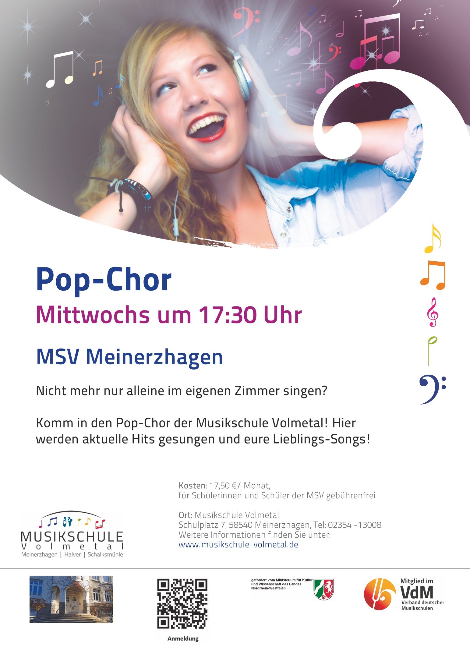 Das Angebot im Sozialen Bürgerzentrum Mittendrin in Meinerzhagen „Sing mit“ wird durch das Angebot „Pop-Chor“ in den Räumen der Musikschule Volmetal abgelöst.